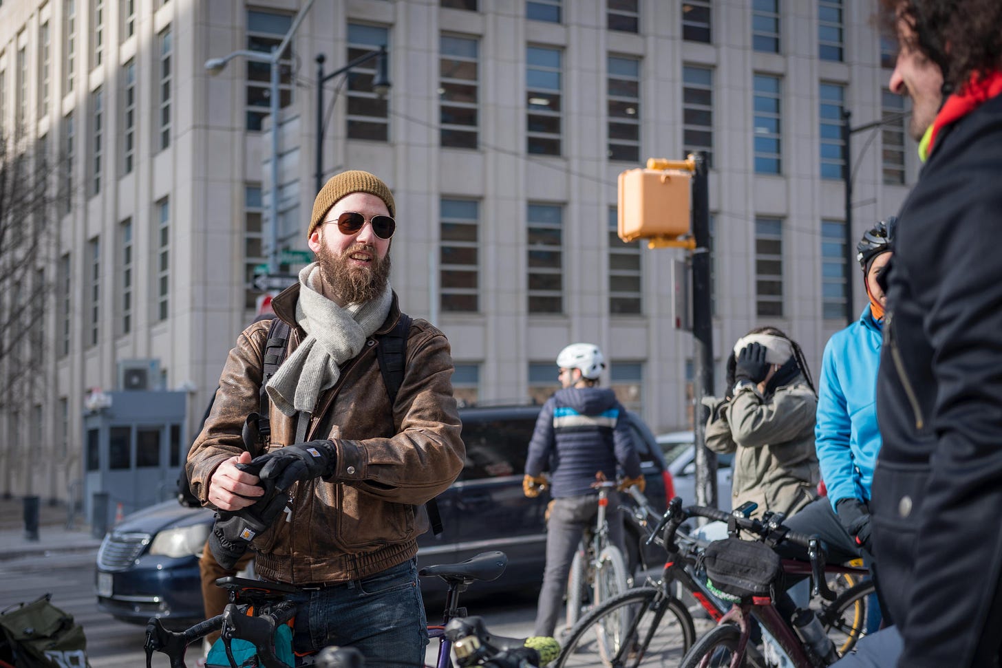 Dom’s opportunity finally came in January of 2025. “Justin texted me, and he was like, ‘Hey, are you still interested in leading a ride? We have an open spot coming up, and I’m trying to find someone to fill it.’ I had already planned my ride, test rode it, and figured it all out months ago. I was just sitting on it. Whenever the day came, I was ready.” This route began at Bridge and Tunnel Park in Long Island City and ended at Bridge and Tunnel Brewery in Ridgewood. “We ended up at B & T, which is not open on Tuesdays. It was a private opening just for us, because we know the bartenders. It’s kind of crazy how many people went. We had at least 50 people come out, even though it was fucking cold. It was the coldest day ever. It was in the teens with a real feel of zero, basically.” Dom said the pace of the ride was fast due to the cold. He added that there were, unsurprisingly, few newcomers, as it was extremely freezing.