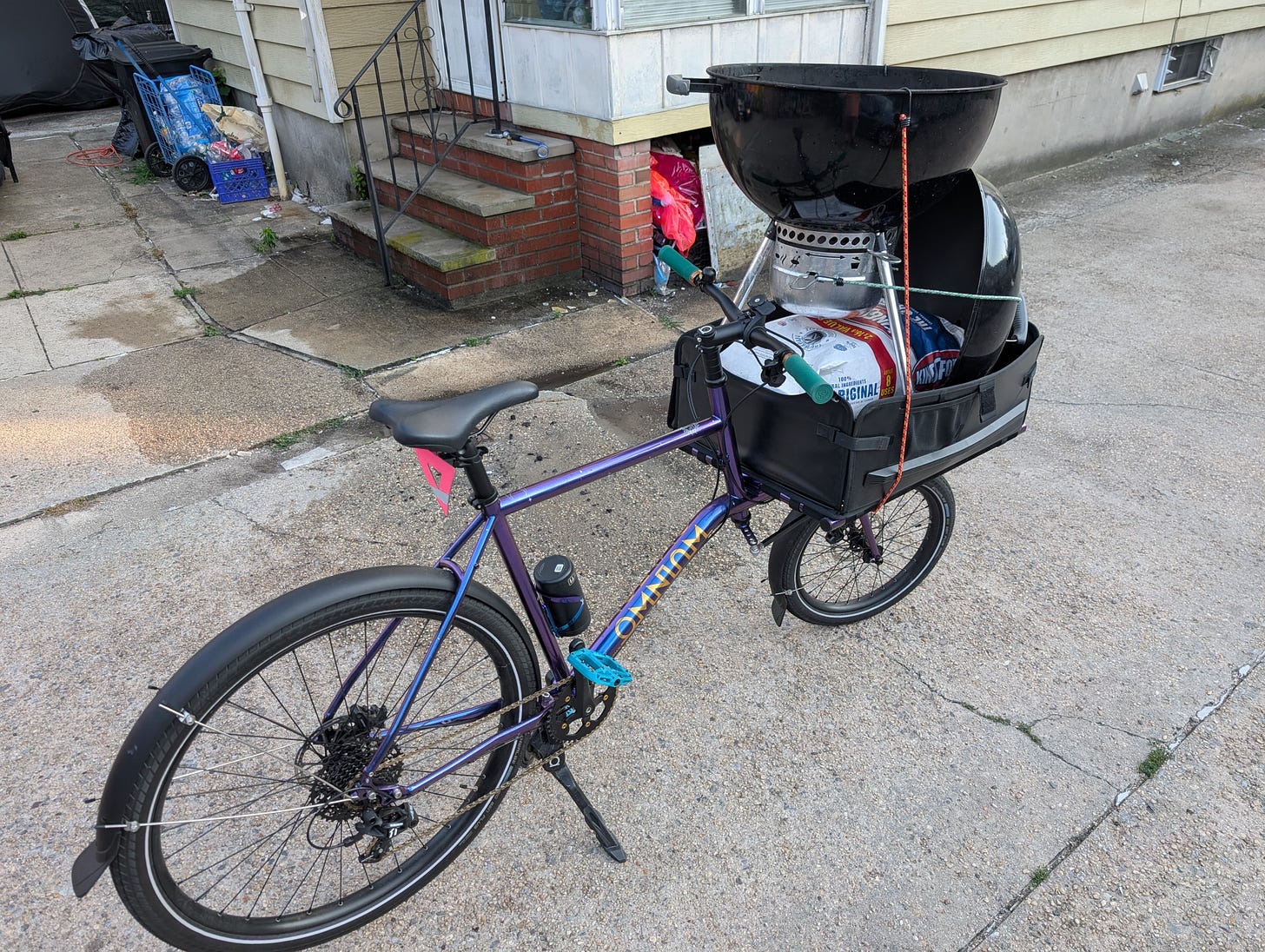 Since acquiring his Omnium, Dom has had several fun experiences that were made possible by its storage capabilities. “Before summer ended, I got a small charcoal grill. I went on a Nelson-led Bike N’ Brew ride to the Bronx.” This particular ride ended at Concrete Plant Park, a name that escaped Dom during the interview. “I grilled a bunch of hot dogs for everybody, and that was awesome.”